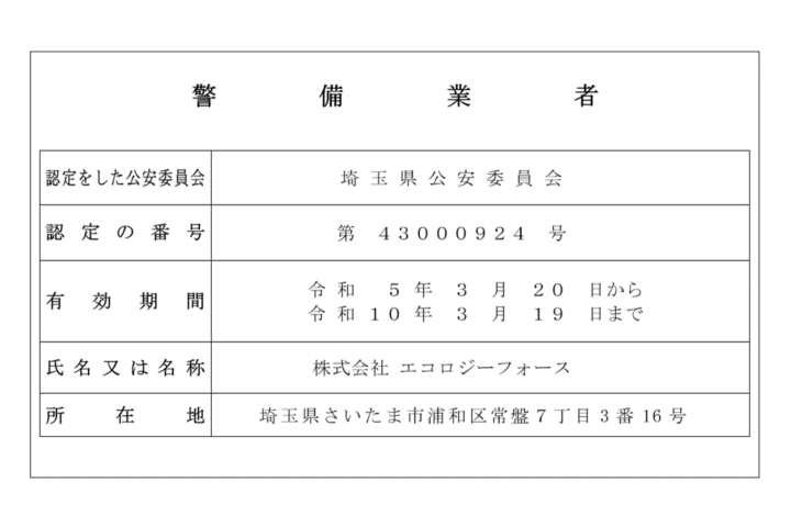 お知らせ警備業者の標識を掲載しました。